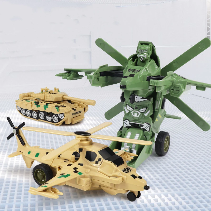 Transformation Robot ABS Plastic Toy Car Collision Inertial Transforming Helicopter Armored Car Tank Model Kids Gift