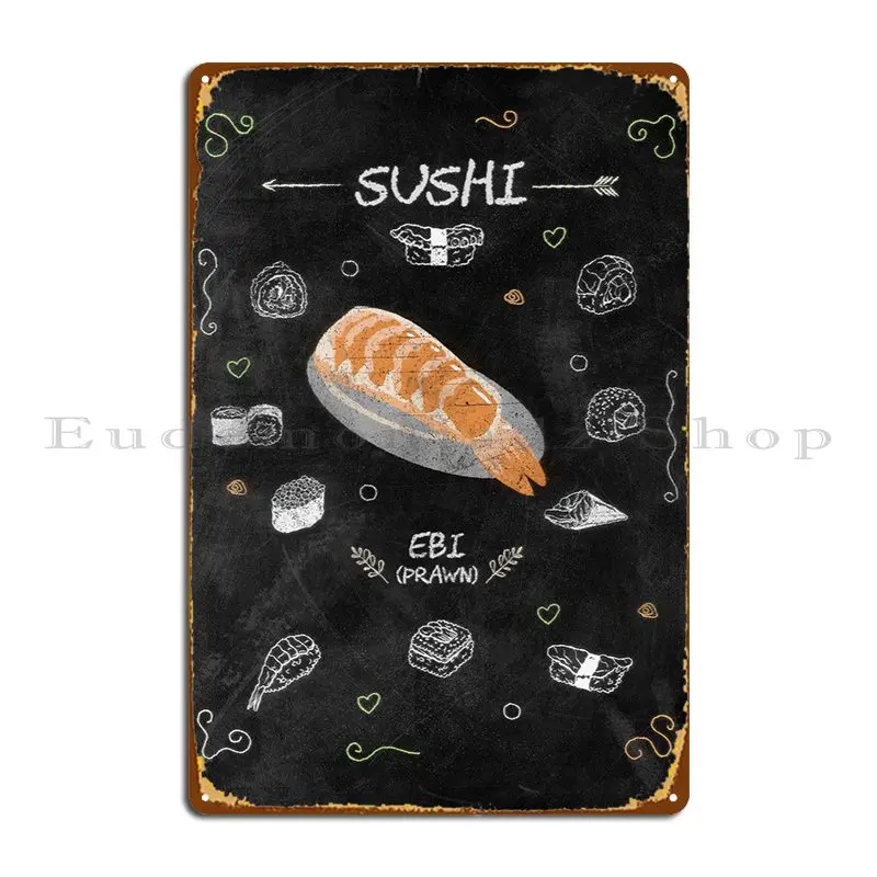 Металлический плакат с креветочкой Ebi, украшение для гостиной, дизайнерский клубный плакат с Оловянным знаком