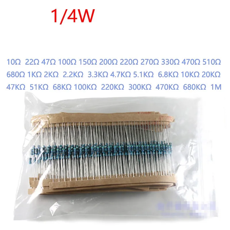 Металлический пленочный резистор 1/4 Вт (0,25 Вт) 10 Ом-1 м в упаковке 30 типов, 20 каждая, в общей сложности 600 пяти цветных колец 1%