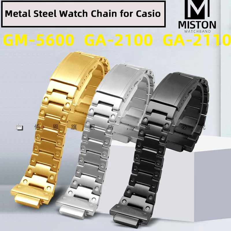 Металлический ремешок GM5600 GA2100 GA2110 для CasiOak GA-2100 ga-2110 стальной ремешок, твердый стальной металлический ремешок для часов, Мужская стальная цепь