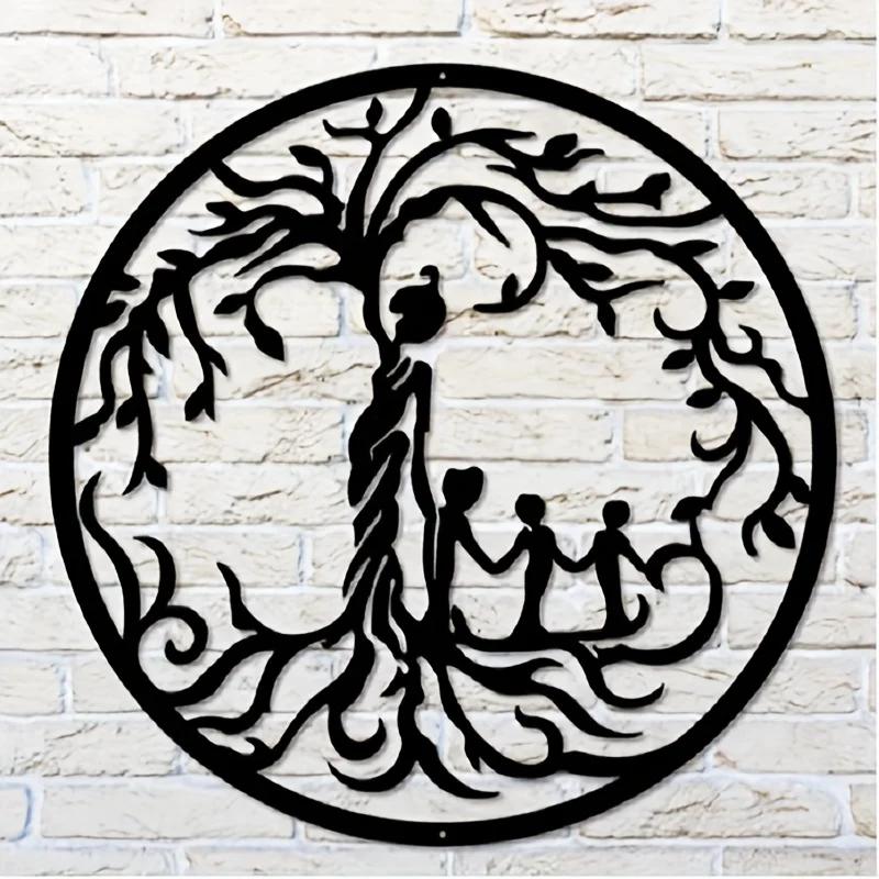 Металлическое настенное искусство Дерево жизни День матери Бесконечная любовь с детьми | Элегантные поделки из железа и подвесные украшения для украшения дома темные хаки