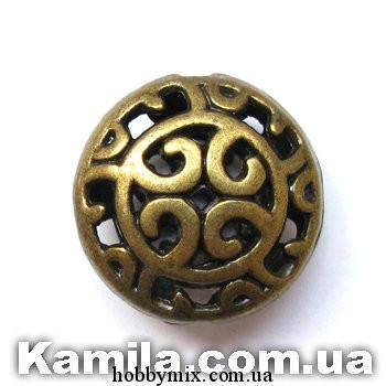 Металл. бусина "крупная с узором" бронза (1,7 см)