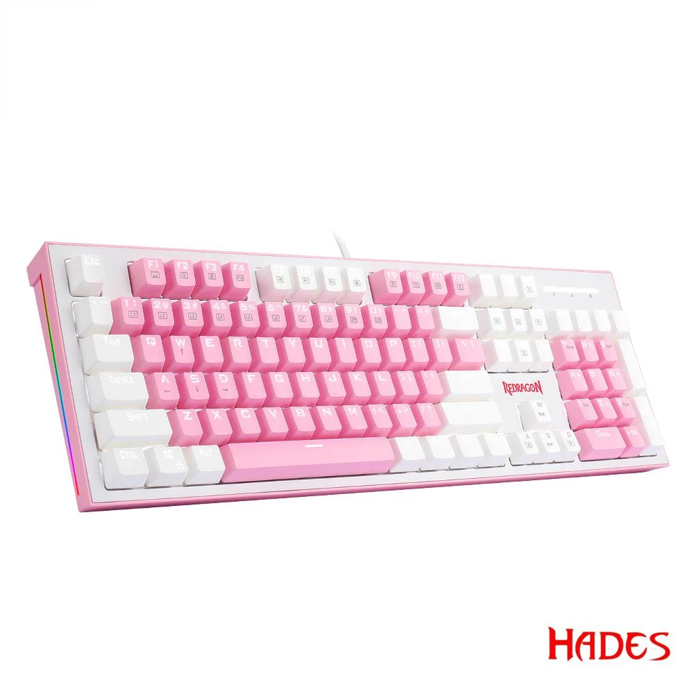 Механическая игровая клавиатура HADES K623, USB, розовая, белая, голубой переключатель, светодиодная подсветка, 104 клавиш, для компьютера, ПК, гейме...