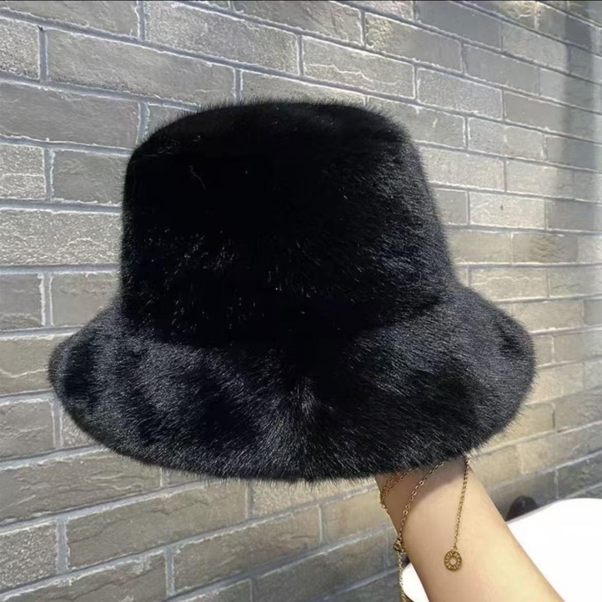 Меховая интегрированная однотонная шапка женская универсальная теплая и флисовая маленькая теплая шапка-ведро из меха норки чёрный