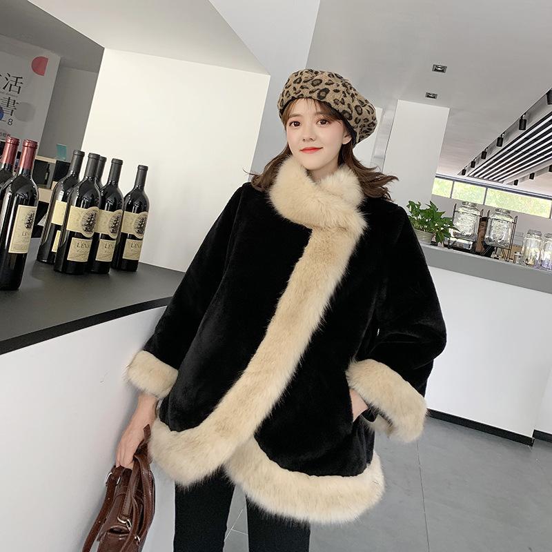Меховое пальто женское новое осенне-зимнее пальто с имитацией лисьего волоса молодежное утолщенное модное пальто из кроличьей шерсти свободная шаль 3XL