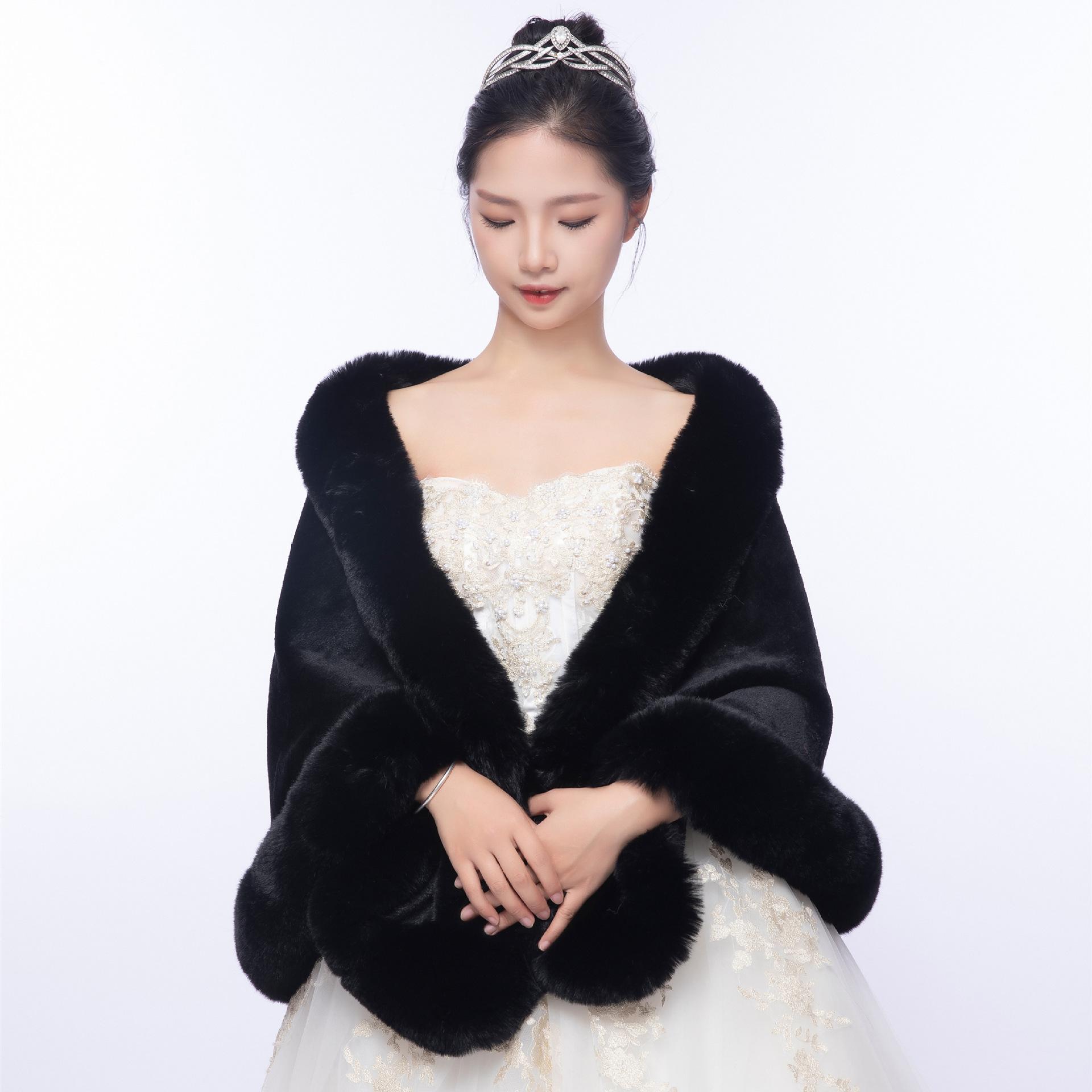 Меховой воротник, меховая шаль без рукавов, женская осенне-зимняя теплая верхняя накидка для невесты, высококачественное чувство сплошного цвета, имитация кашемира one size чёрный