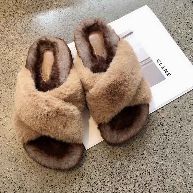 Меховые тапочки Celebrity Cross band, женская зимняя обувь, теплые плюшевые пантуфли, утолщенная подошва, разноцветные флисовые шлепанцы, женские 5 хаки