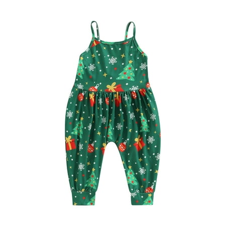 wybzd Toddler Baby Girl Christmas Jumpsuit Outfits Kids Snowflake Elk Santa Sleeveless Strap Romper Long Pants Clothes 3-4 Years