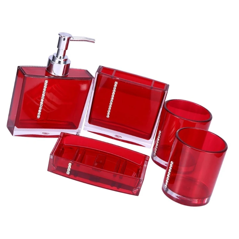 Pack Of 5 Modern Bathroom Vanitys Set Crystal Like Acrylic Toothbrush Cup Soap Dispenser