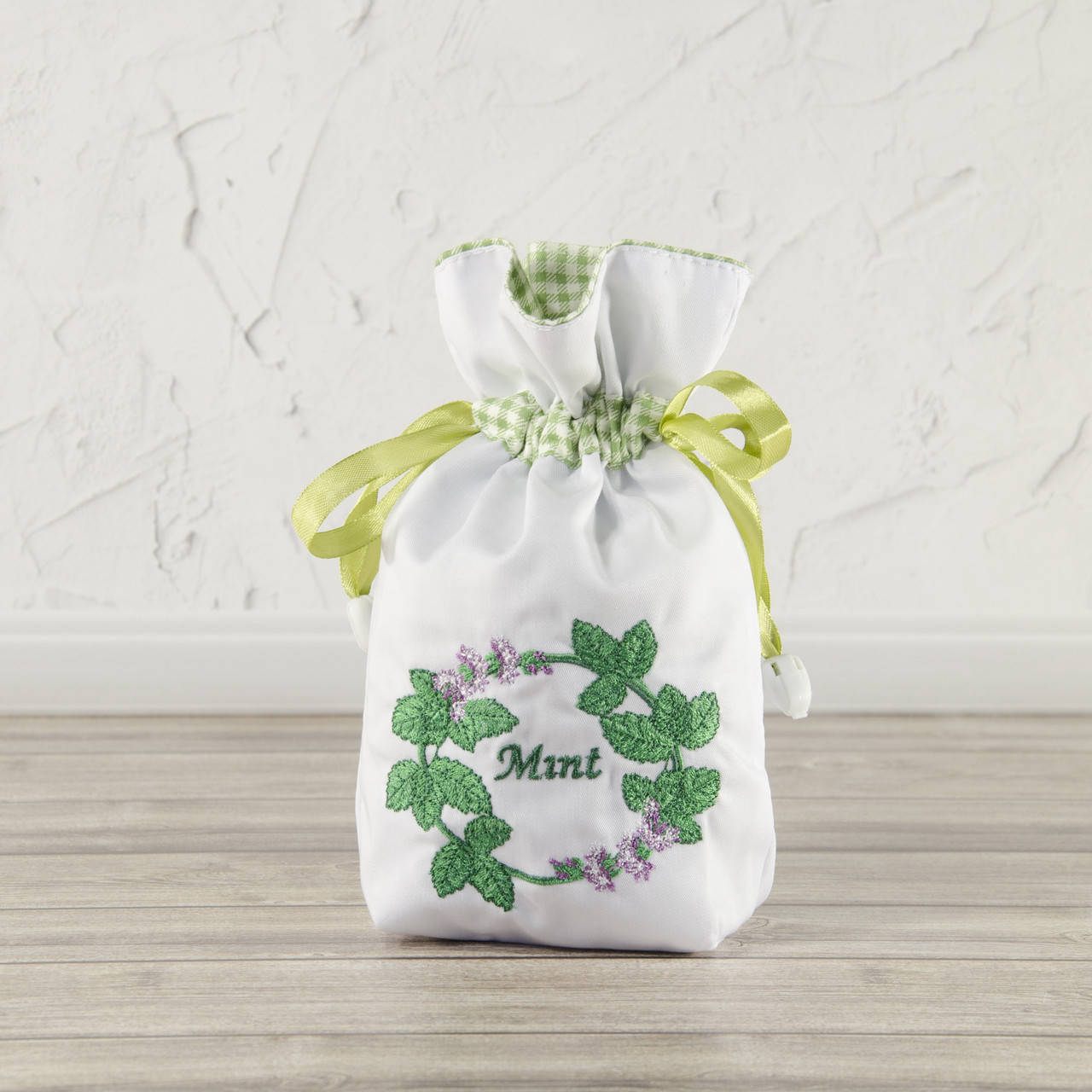 Мешочек для хранения трав, подарочный с завязками - мята венок