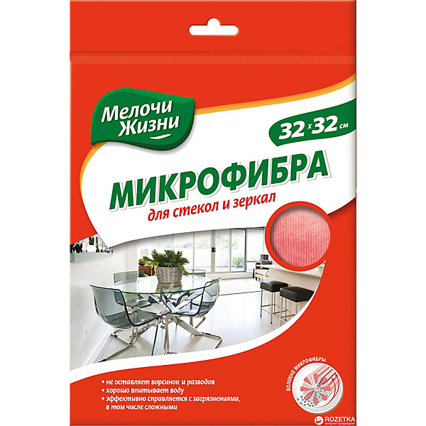 Салфетка для мытья и полирования стеклянных и зеркальных поверхностей. Быстро справляется с отпечатками пальцев и следами капель. Деликатно очищает до блеска без моющих средств.