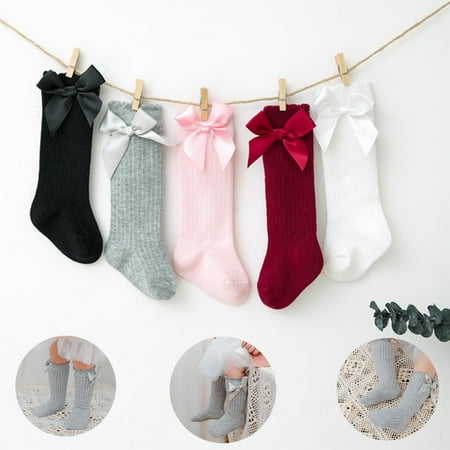 CHUANK 5 Pairs Baby Girl Knee-High Socks Toddlers Bow Stockings Newborn Infant Non-Slip Sock