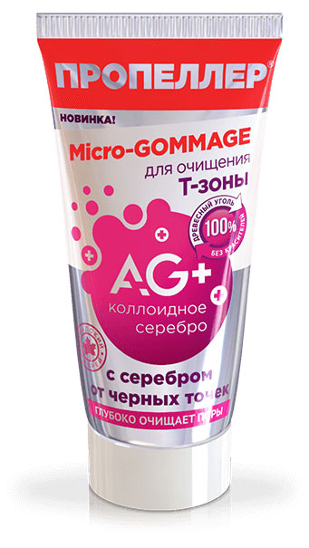Микро-гоммаж Пропеллер для очищения Т-зоны с серебром от черных точек, 40 мл