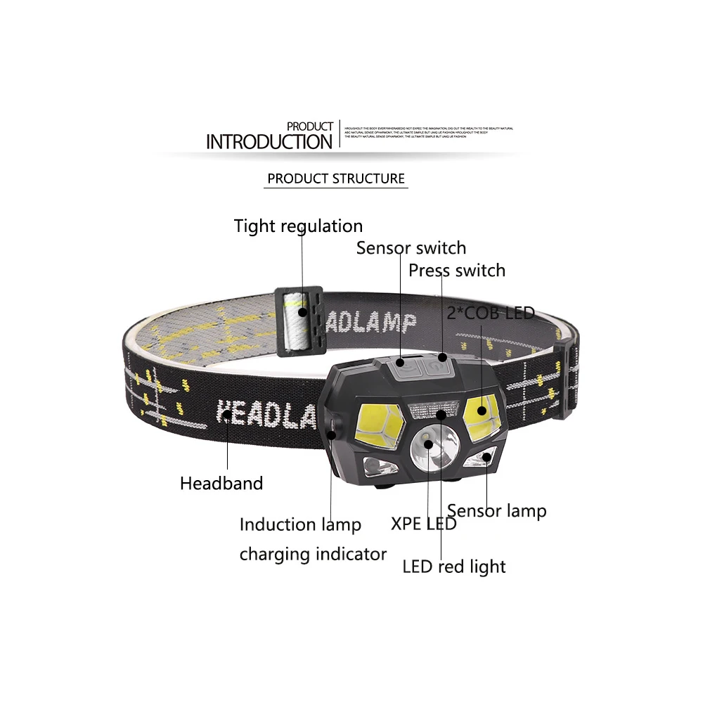 Микро-налобный фонарь с датчиком корпуса, прочный многоцелевой фонарь из АБС, легкое освещение, оборудование для кемпинга, походов