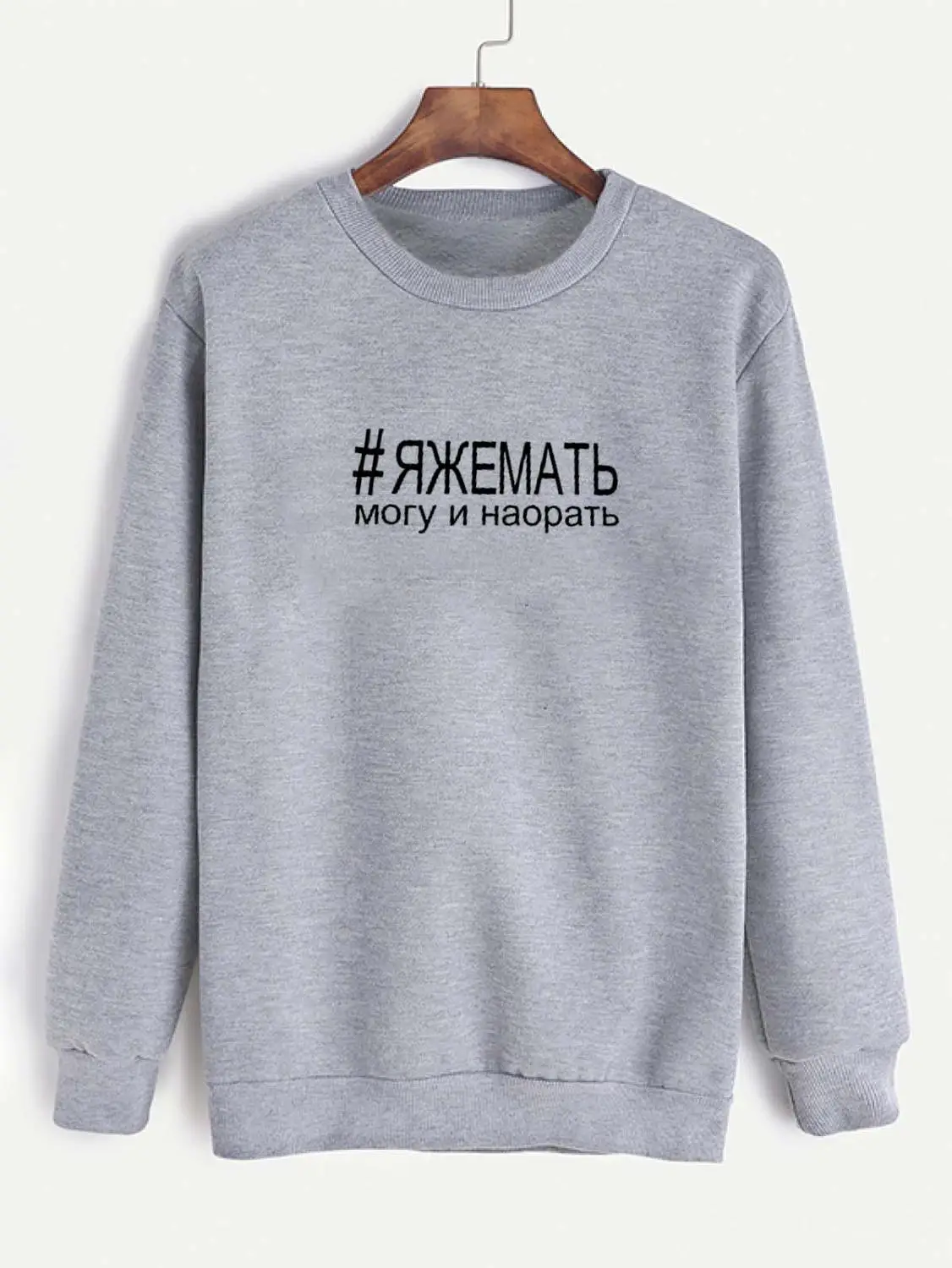 Sweatshirt I can and yell Russian Letter Printed New Arrival Women's Funny Long Sleeve Casual Cotton Tops