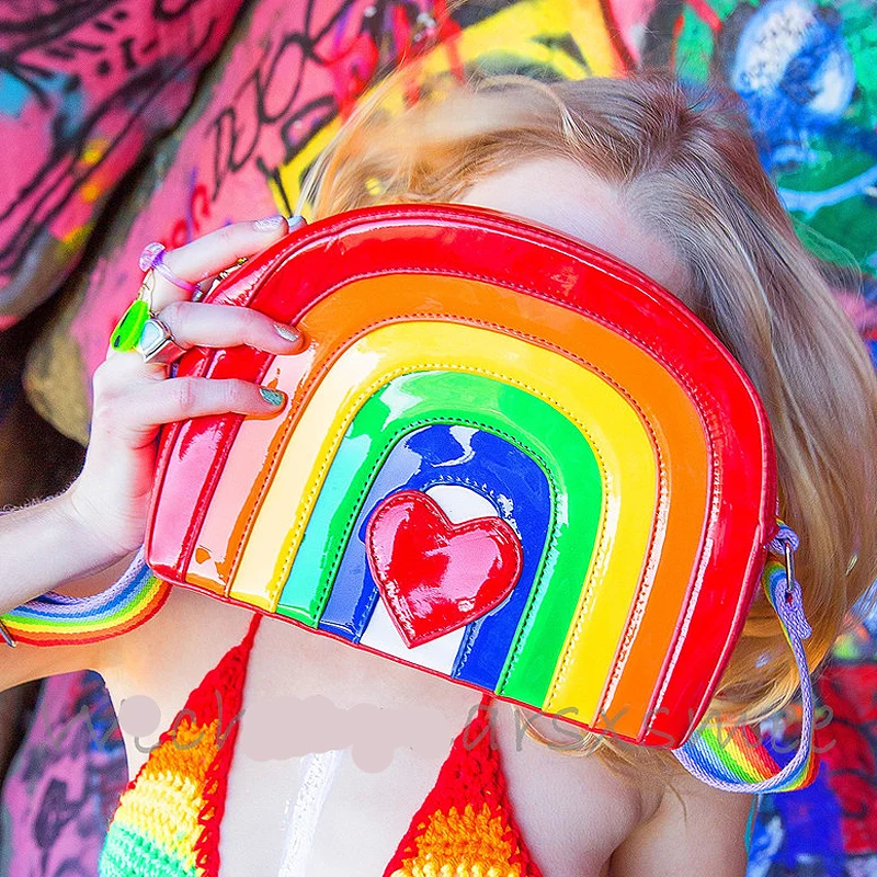 Милая Радужная женская дизайнерская сумка Hnadbag, прошитая цветная Женская Повседневная сумка через плечо для девушек, модная сумка-мессендж...