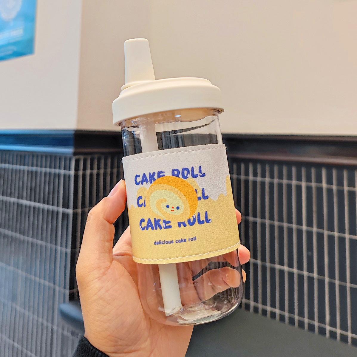 Милая бутылка для воды для кофе, сока, молока, кавайная пластиковая чашка для чая с крышкой и соломинкой, портативная многоразовая бутылка для питья, не содержит бисфенол-А 500ML