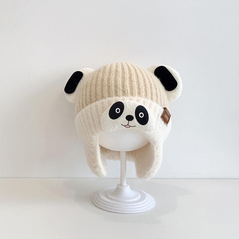 Милая детская вязаная шапка в виде панды, зимняя теплая шерстяная защитная шапка для малышей с мультяшными ушками, детские шапки-ушанки для мальчиков и девочек 46-48cm fit 6-24M