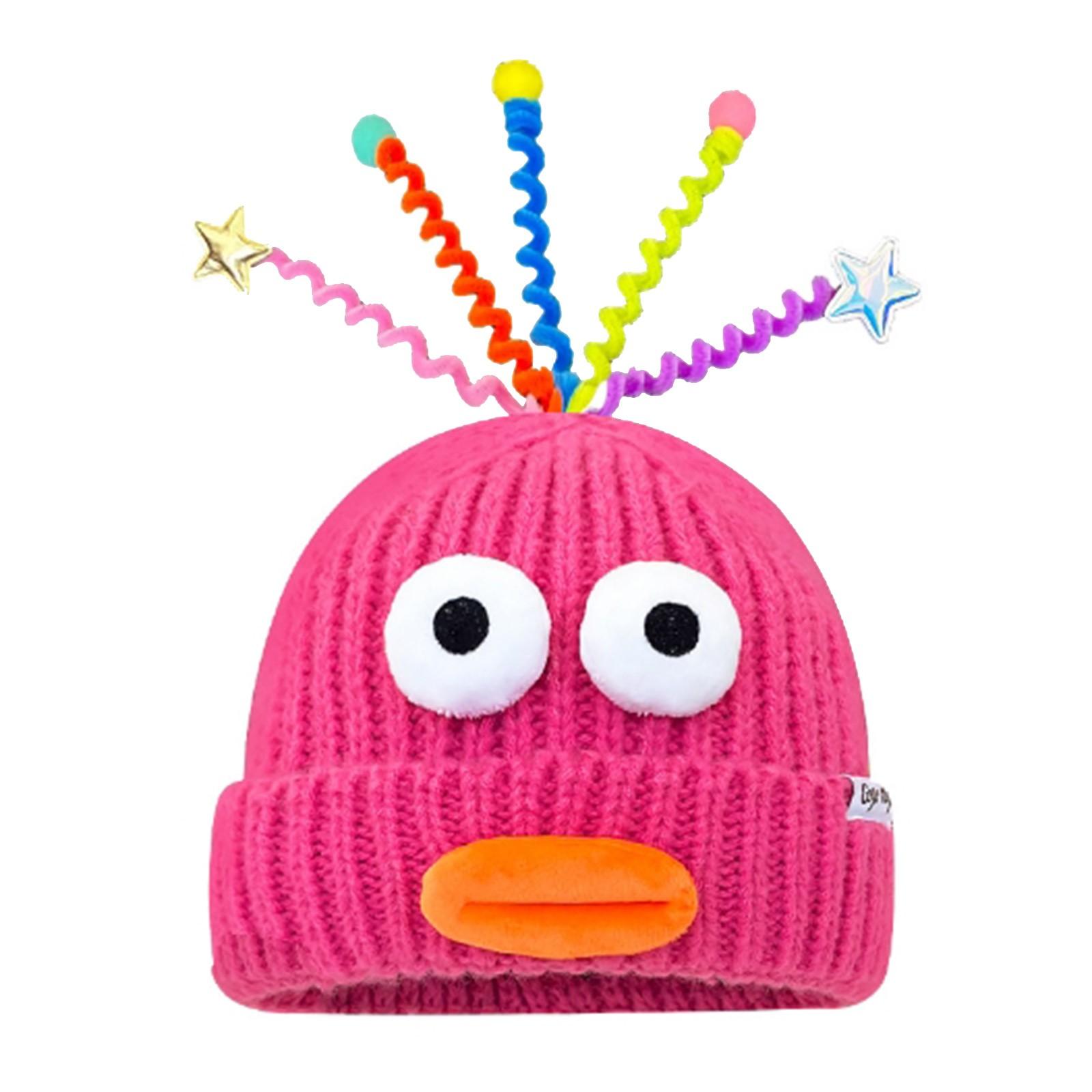 Милая и забавная вязаная шапка, милая мультяшная светоизлучающая шерстяная шапка для девочек осенью и зимой, забавная вязаная шапка One Size горячий розовый