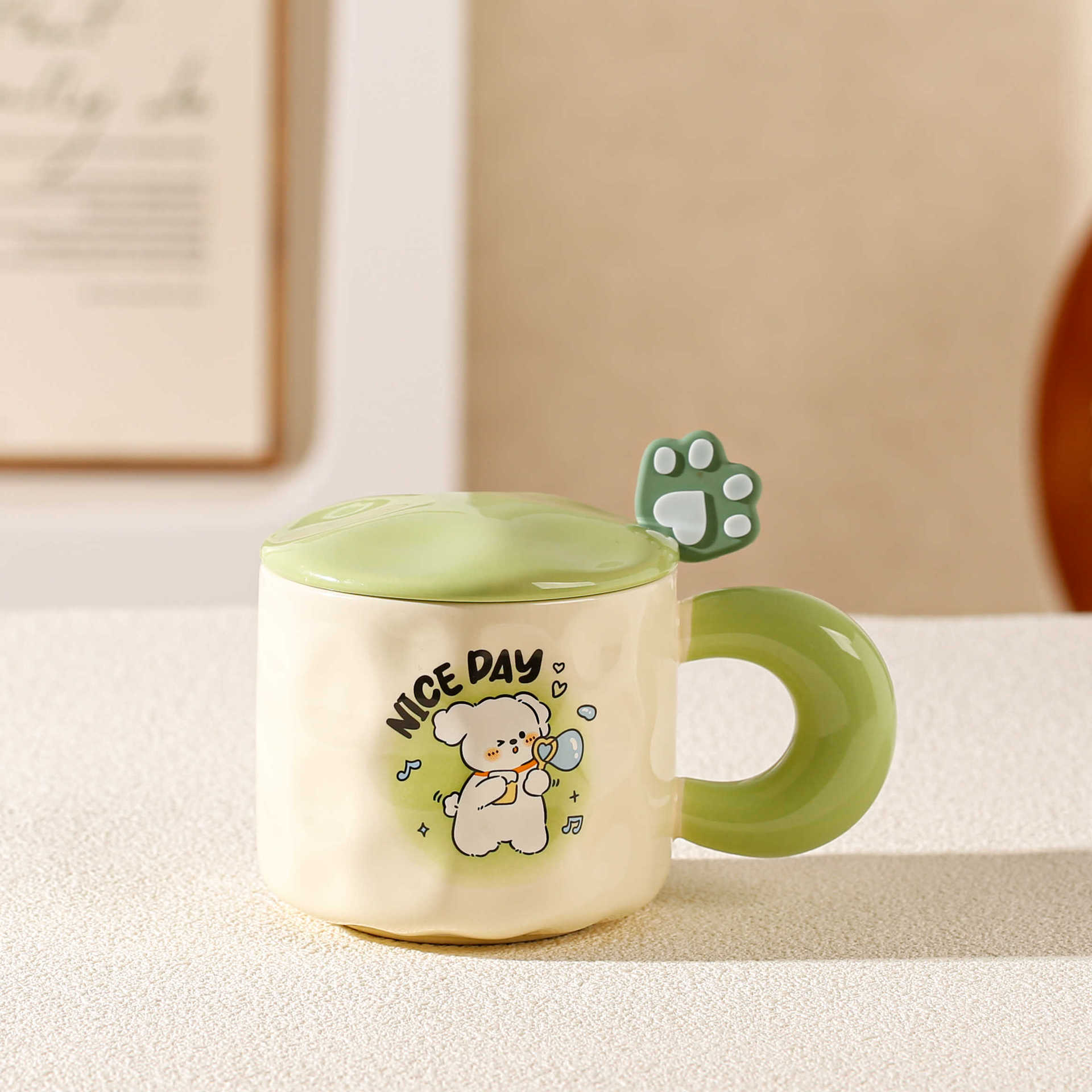 Милая керамическая кружка для щенка с высоким взглядом с крышкой и ложкой Детская кружка Чашка для воды Женская парная чашка Подарок на день рождения 380ML