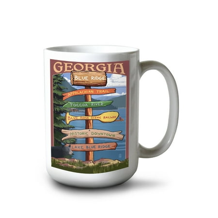 15 fl oz Ceramic Mug Blue Ridge Georgia Destination Signpost (Version 2) Dishwasher & Microwave Safe