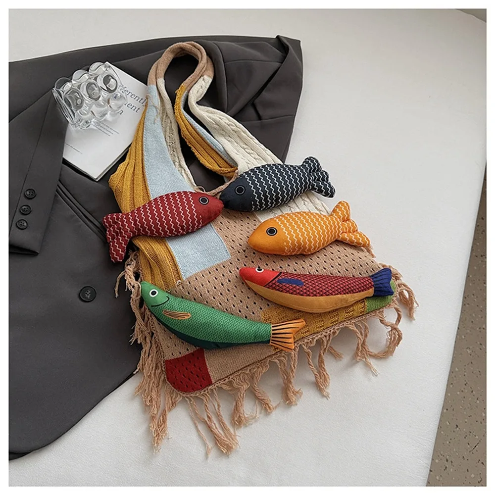 Милая летняя хлопковая вязаная крючком сумка на плечо, модная пляжная сумка с кисточками, простая женская сумка из плетеного материала с вырезами