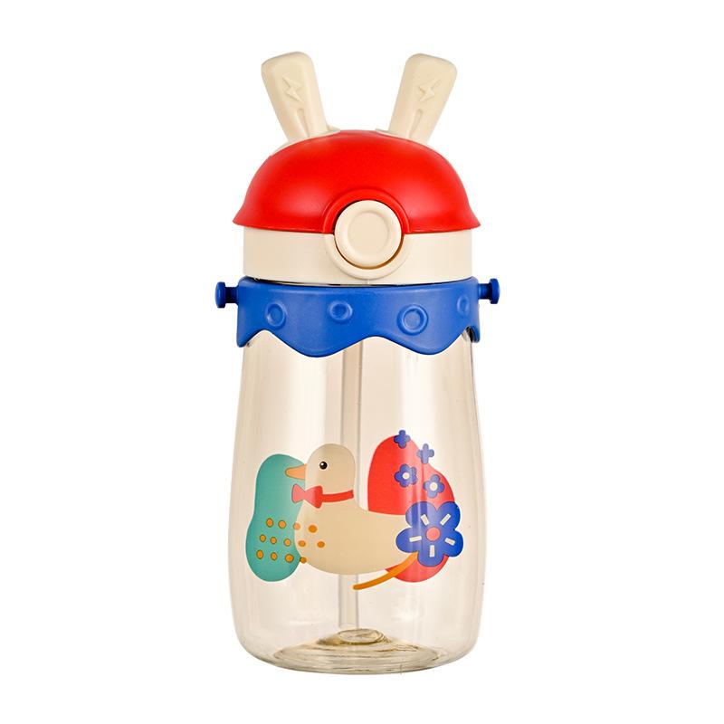 Милая мультяшная детская чашка-непроливайка, детская герметичная чашка, портативная летняя соломенная чашка для питья, пластиковая чашка для ПК 490ML синий