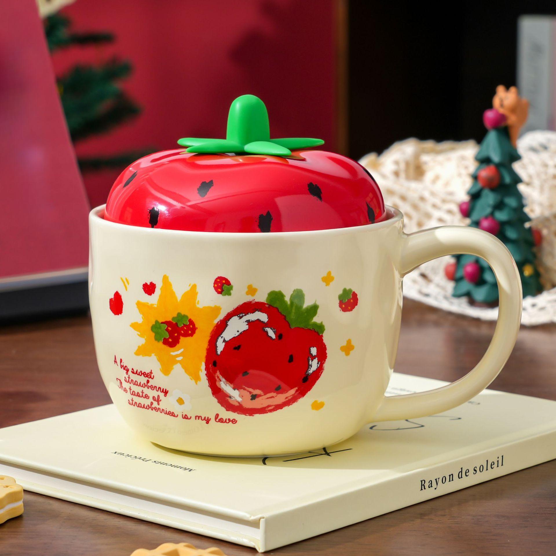 Милая мультяшная керамическая кружка с крышкой в виде яблока, креативная индивидуальная кружка для кофе, молока, офиса, воды, домашнего хозяйства 420ml