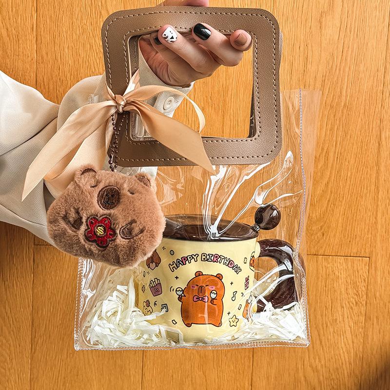 Милая мультяшная керамическая кружка с крышкой для девочек, подруг, подарки на день рождения, детские подарки, практичные кружки, подарочная коробка. 401-500ml