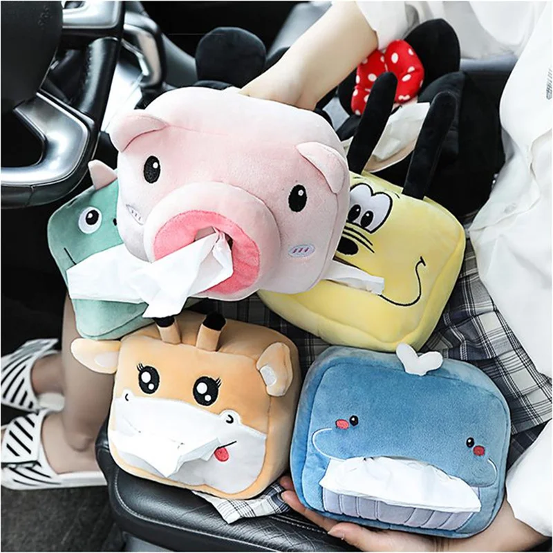 Милая мультяшная коробка для салфеток, плюшевая салфетка, универсальный автомобильный бумажный чехол для дома, декоративный кронштейн для животных