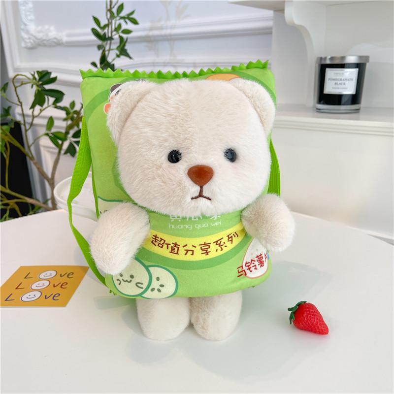 Милая мультяшная сумка для закусок с изображением медведя с картофельными чипсами, плюшевая кукла, универсальная школьная сумка для мелочей, сумка-мессенджер в виде сердца для девочек, маленькая сумка 28cm (about 0.2kg) зелёный