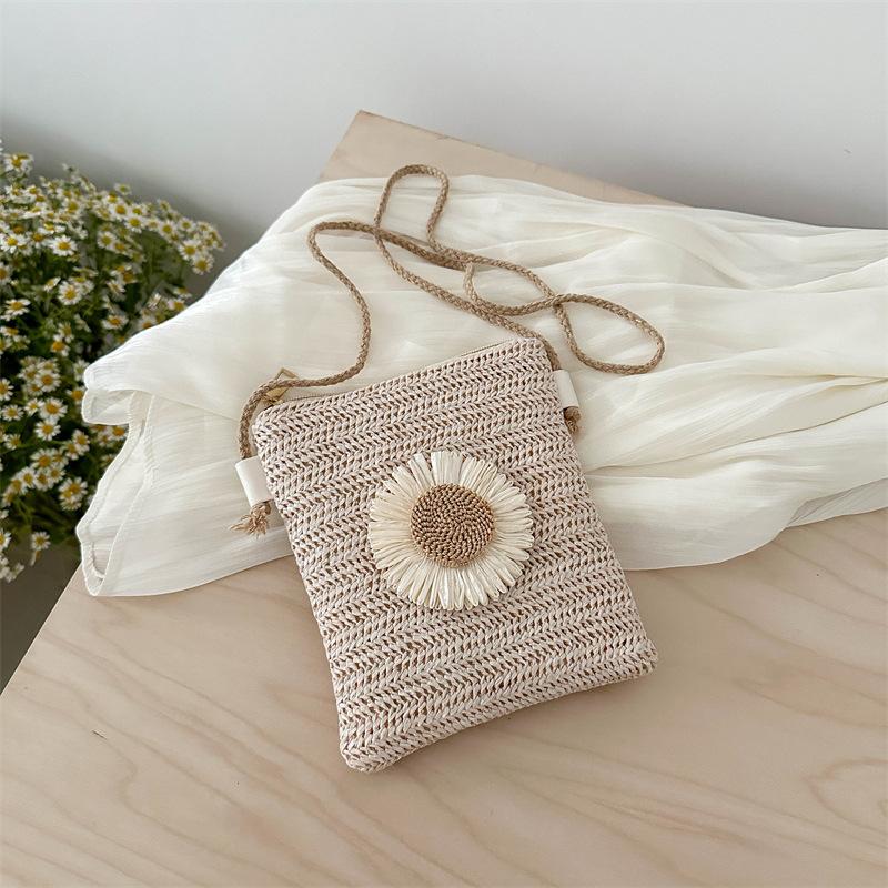 Милая плетеная сумка с цветком для девочек, женская, новый стиль, модная, маленькая, свежая, маленькая квадратная сумка, соломенная плетеная сумка, сумка через плечо