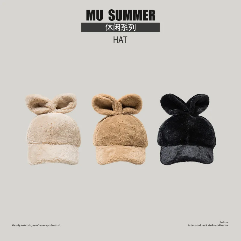 Милая и милая плюшевая бейсболка в японском стиле с кроличьими ушками, модная Универсальная мягкая бейсболка в Корейском стиле для девушек ...