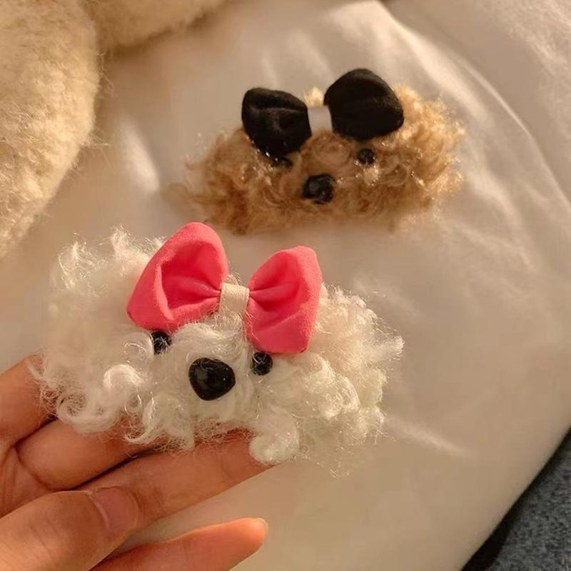 Милая плюшевая заколка для волос с бантом для собак, женская осенне-зимняя боковая заколка, плюшевые заколки для волос, детские головные уборы, аксессуары для волос, повязка для волос для девочек