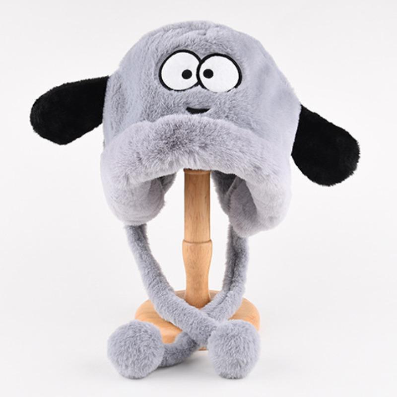 Милая плюшевая шапка в виде щенка, женская зимняя велосипедная теплая утолщенная защитная шапка для защиты ушей, мультяшная шапка Lei Feng One Size серый