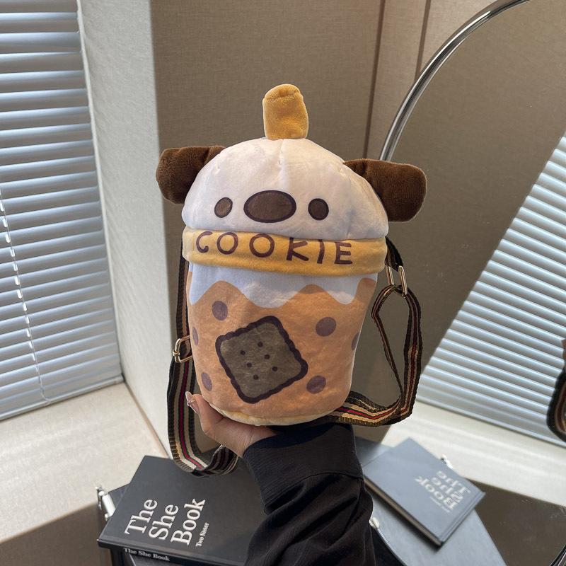 Милая сумка для собаки в виде чашки чая с молоком, женская, 2024 года, новая модная плюшевая сумка с рисунком из мультфильма, сумка-мессенджер через плечо, сумка для куклы