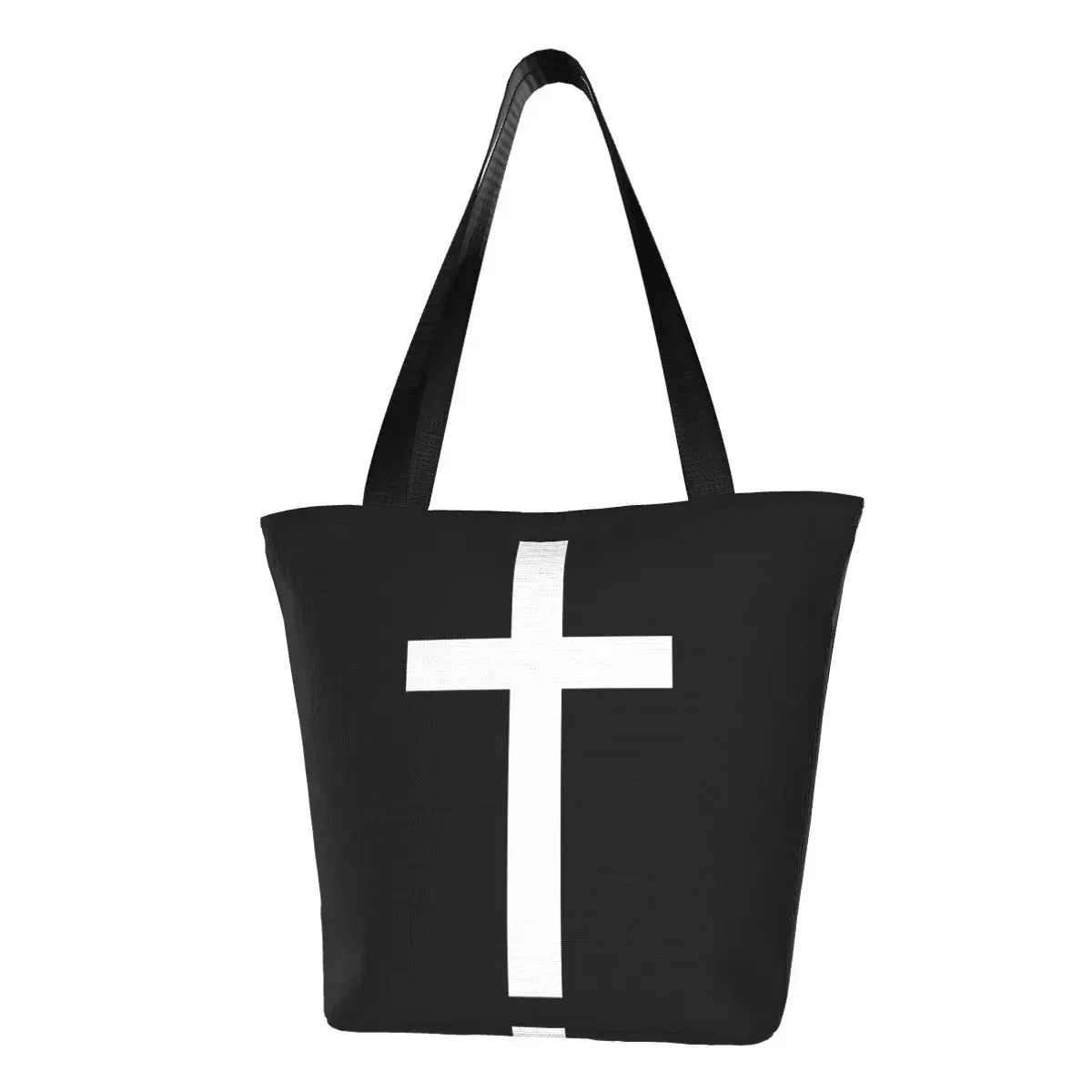 Милая сумка-тоут с католическим крестом Иисуса, сумки для покупок, переработка холста, сумка-шоппер на плечо, религия, христианская сумка