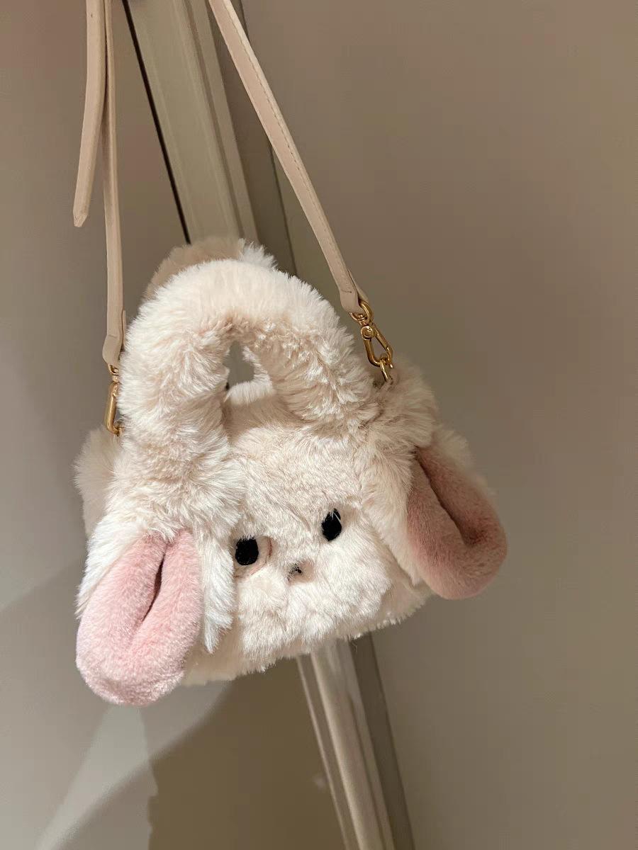 Милая сумочка с пушистым кроликом, осенне-зимняя универсальная сумка молочного цвета Huhu Mao Mao 2024, новая сумка через плечо белый