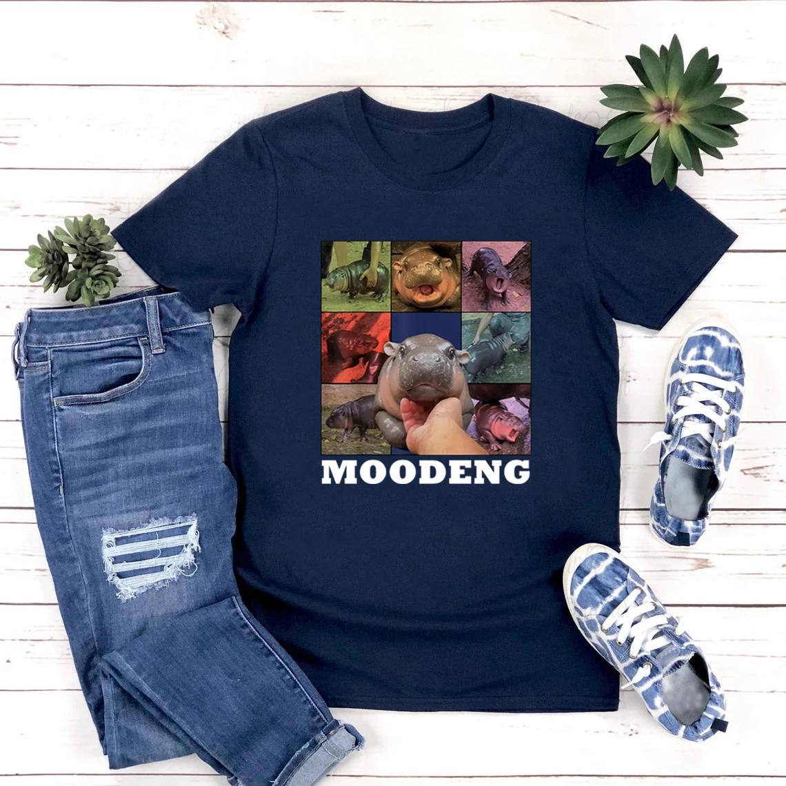 Милая футболка с изображением бегемота Moo Deng Футболки с изображением бегемота Khao Kheow Open Zoo Футболки с забавным принтом Moo Deng Футболка в подарок любителю бегемотов XXXL темно-синий
