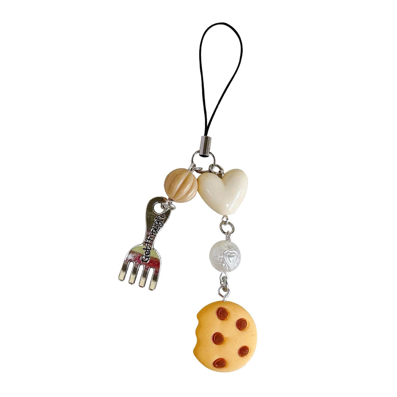 Милая цепочка для телефона в виде печенья, подвеска в виде вилки, брелок для ключей, бусина в форме сердца, брелок для телефона, акриловый брелок для сумки, украшение