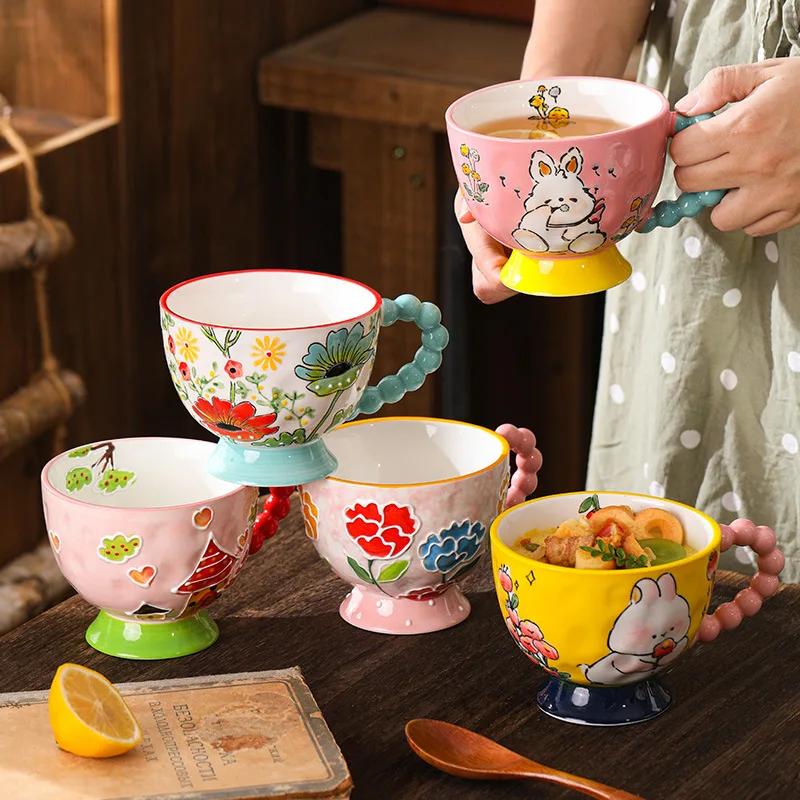 Милая чашка для завтрака с ручкой, не допускающей ожогов, детская чашка, офисная чашка для кофе в микроволновке, домашняя керамическая чашка большой емкости style01(401-500ml)