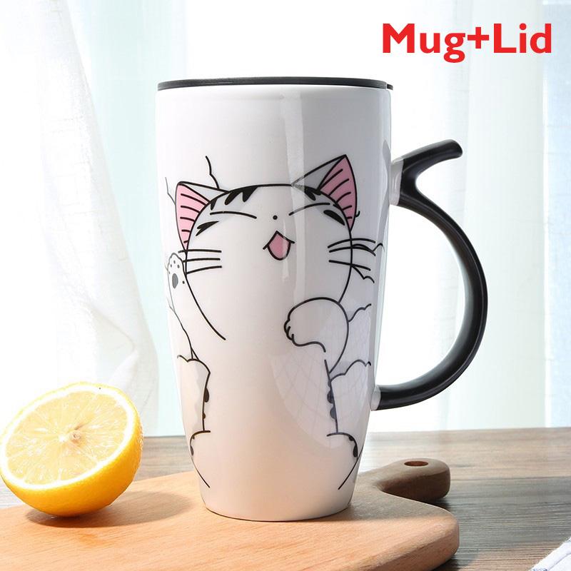 Милая чашка для молока с котом, керамическая кружка для кофе с крышкой, кружки с животными большой емкости, креативная посуда для напитков, кофейные чайные чашки, новые подарки 600 мл 1pc