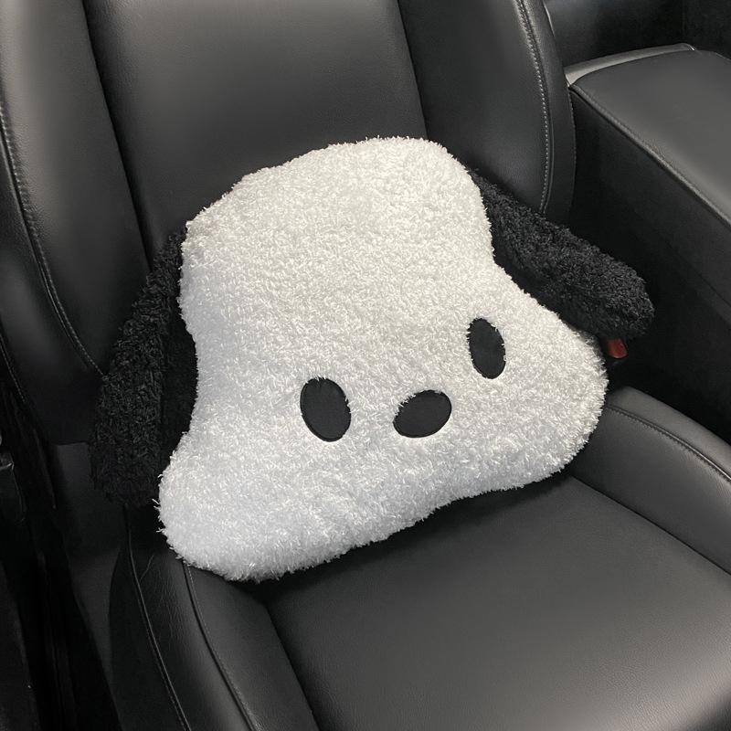 Милая черно-белая собака, мультяшная плюшевая удобная подушка для шеи на подголовник автомобиля