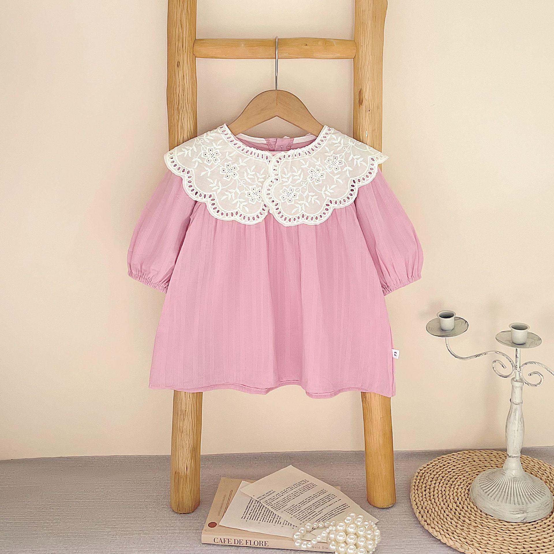 Милое кружевное боди-платье с длинными рукавами и воротником для маленьких девочек - стиль весна/осень 73 cm