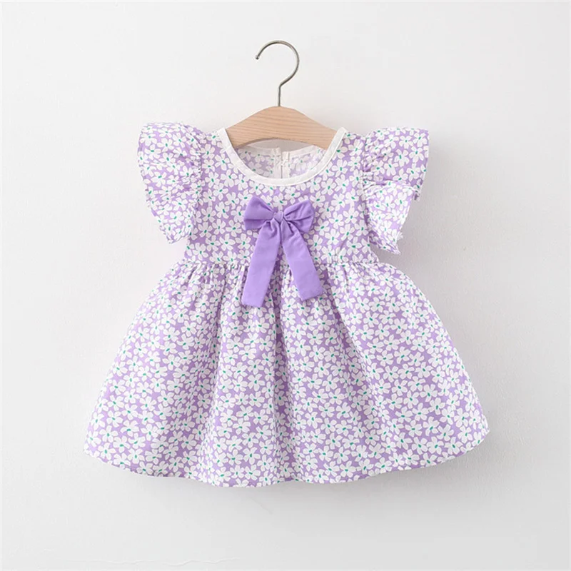 Милое летнее платье с бантом, одежда для маленьких девочек с цветочным рисунком, оранжевые/яркие платья принцессы, модная праздничная одежд...