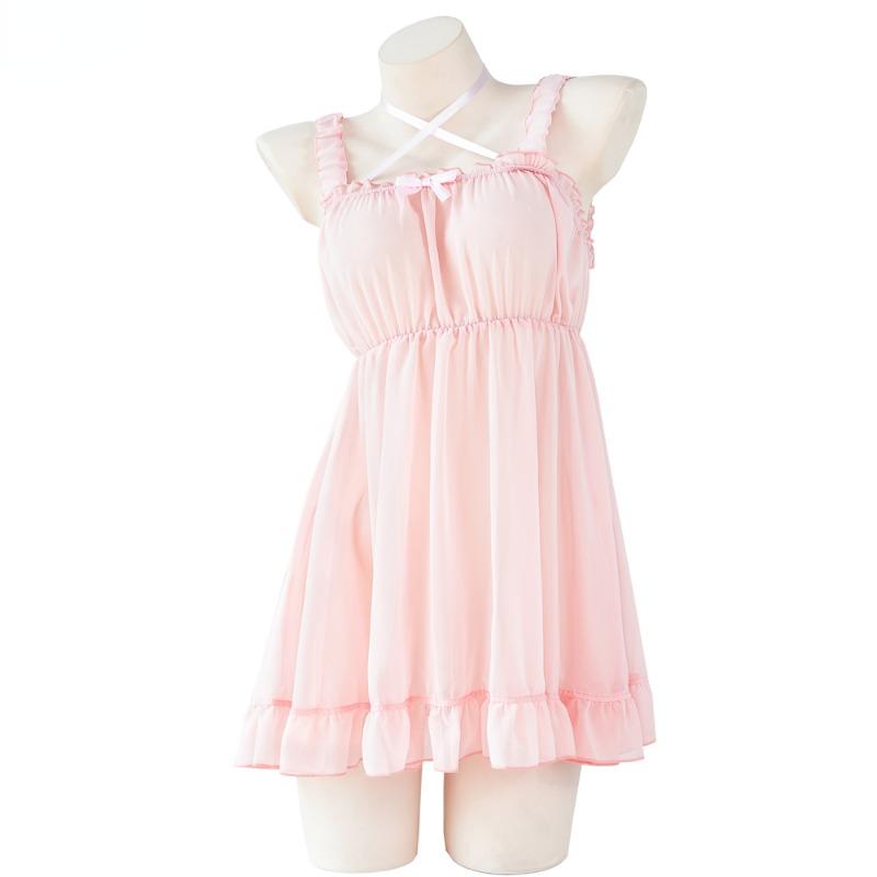 Милое шифоновое платье в стиле аниме Лолита для девочек, кавайное платье, женская розовая ночная рубашка, пижамные костюмы, костюмы для косплея L розовый