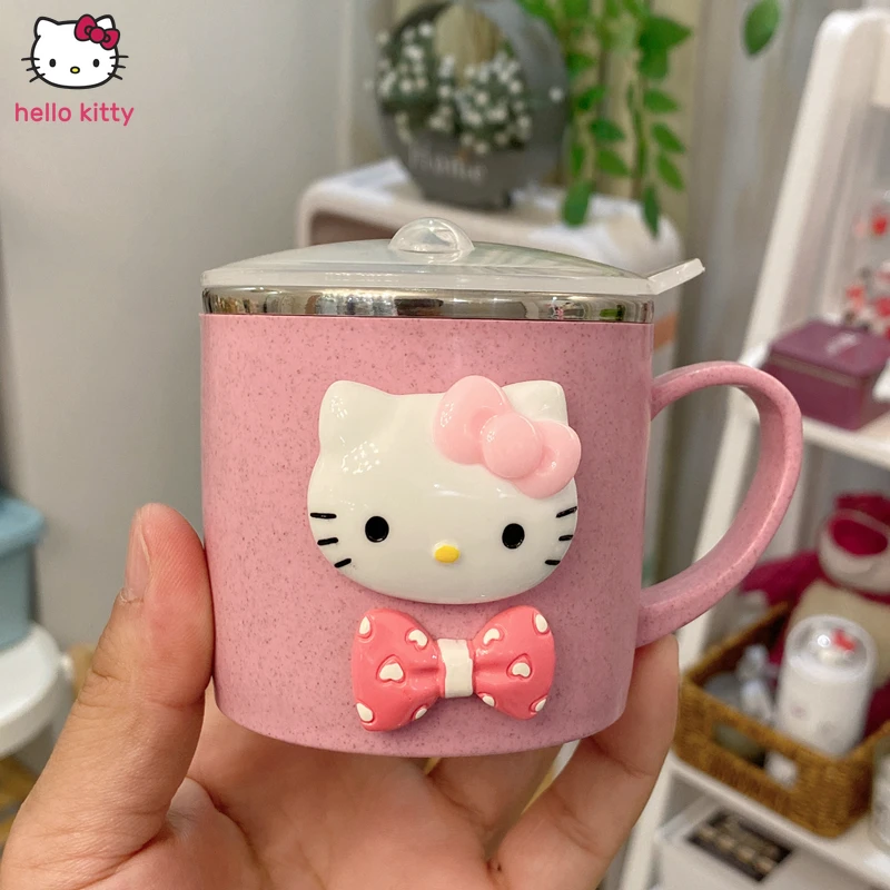 Милые детские чашки Hello Kitty, чашка для дома и детского сада, чашка с защитой от падения, детская чашка для питья с крышкой, чашка из нержавеюще...