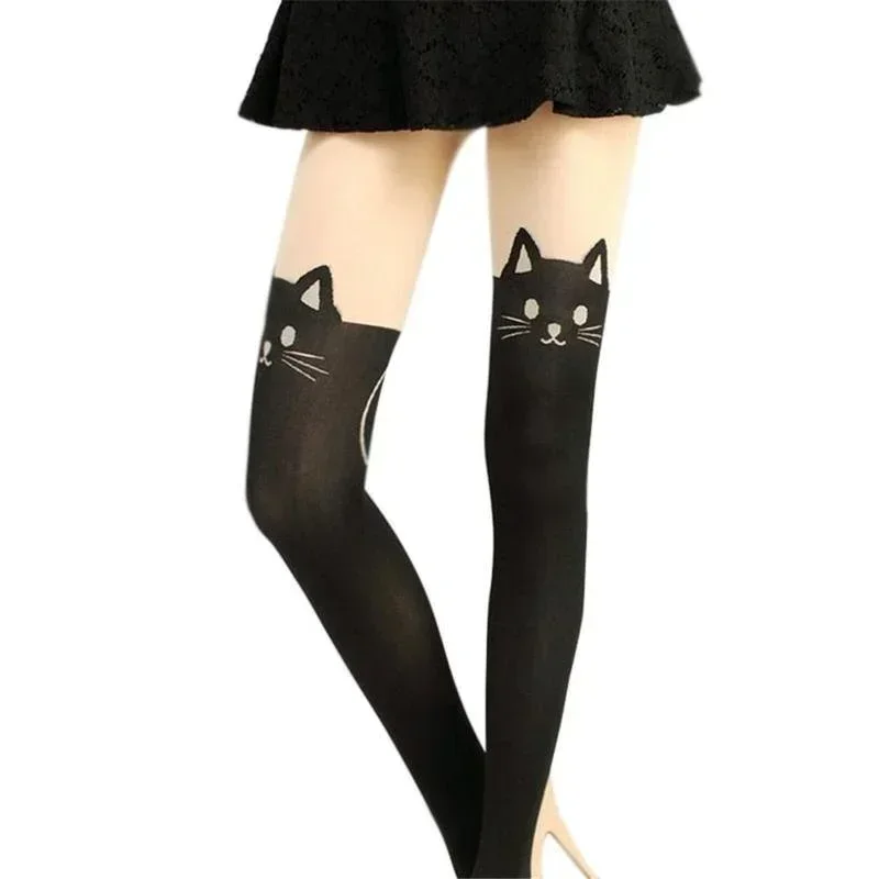 Милые длинные носки чулки выше колена с рисунком мультяшных животных Кошки женские чулки с рисунком кота модные аксессуары