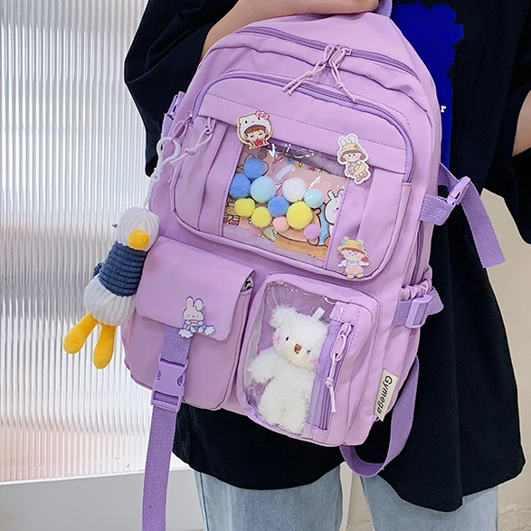 Милые женские рюкзаки 2023, водонепроницаемый нейлоновый школьный рюкзак с несколькими карманами для студенток, женские милые рюкзаки для но...