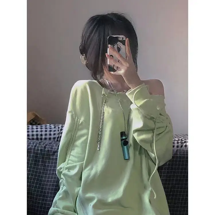 Милые женские свободные повседневные весенние топы зеленого цвета с длинными рукавами для студенток в японском стиле